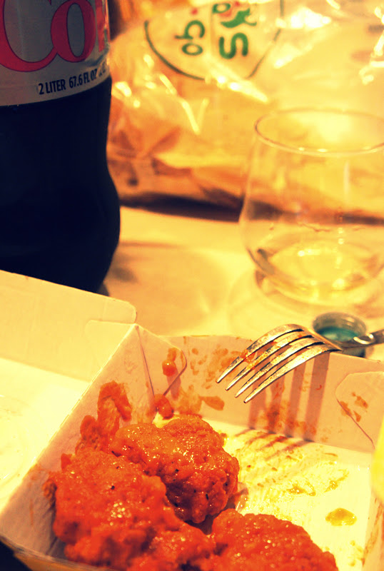 Our 5 year anniversary dinner. Chips. Wings. Wine.