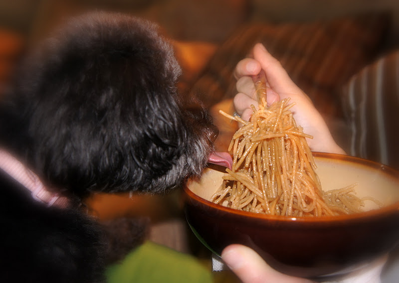 Anyhow–I told Shawn to take a picture of how Maggie was admiring my spaghetti.