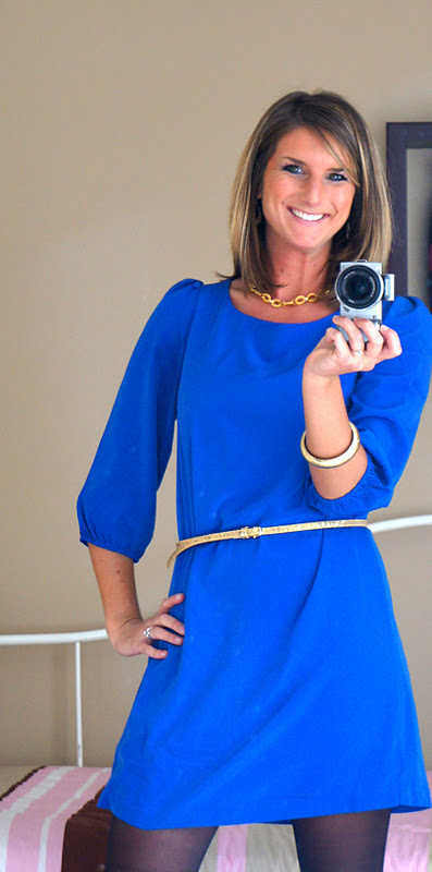 Except when you work at a place that believes it is inappropriate to wear something that doesn’t go past your knees. In which case, you must slap on a skirt to cover up those couple of inches of thigh that were exposed {under black tights}. Either way, I love the dress.