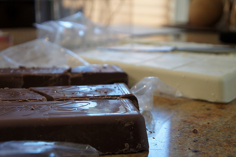 -Melt your chocolate in the microwave {check it every 45 seconds or so and stir until its completely melted}