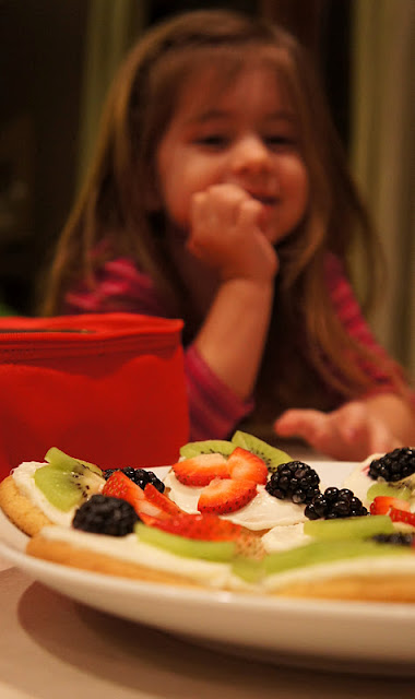 -Roll out cookie dough on pizza sheet and bake according to cookie package