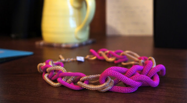 And while you will see it all I am sure at one point or another, all you need to know is that I am presently obsessing at my new necklace that is hanging out beside me on the desk.