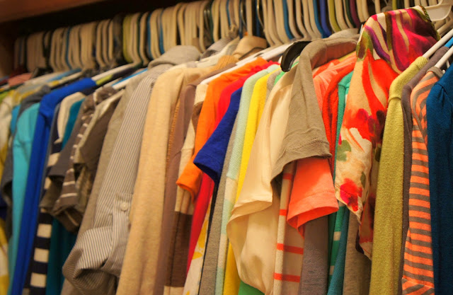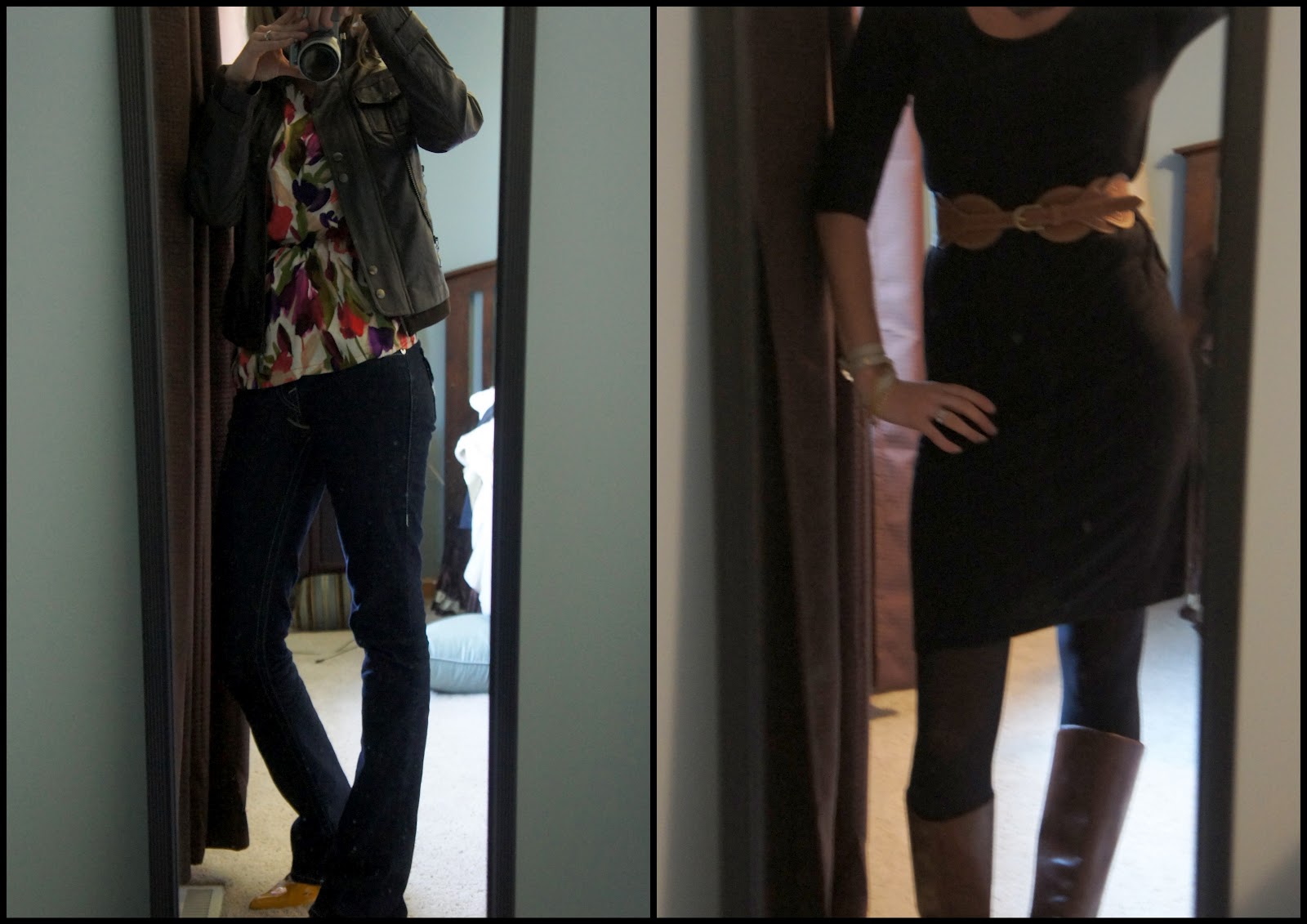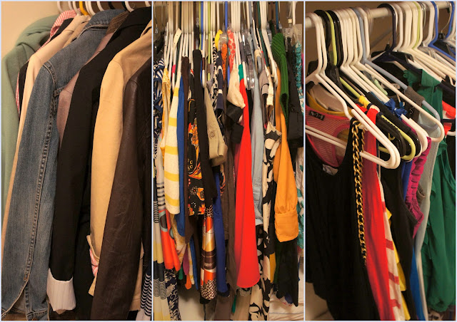 After I am done putting my pants on {in front of a window that my neighbors can see…} I make a beeline for downstairs where I house all of my jackets, dresses, and tank tops.