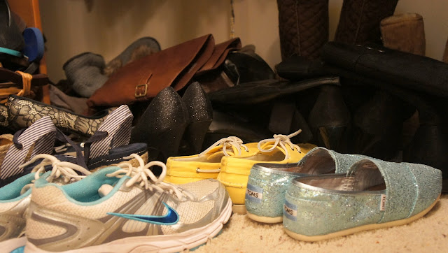 And last but not least. Shoes. I have somehow managed to hide shoes in every nook and cranny of our home it seems. In our closet, under our bed, in baskets, and again, under our bed. This sometimes makes my life a little stressful, but hey–what fun is getting dressed and not having to dig through a pile of gold to find your treasure? Or something like that.