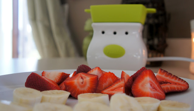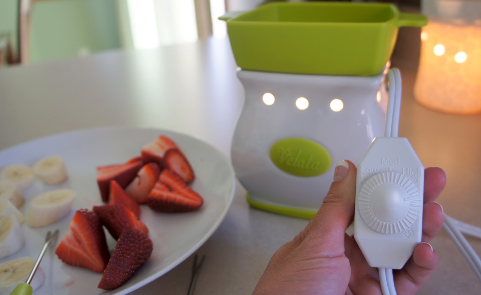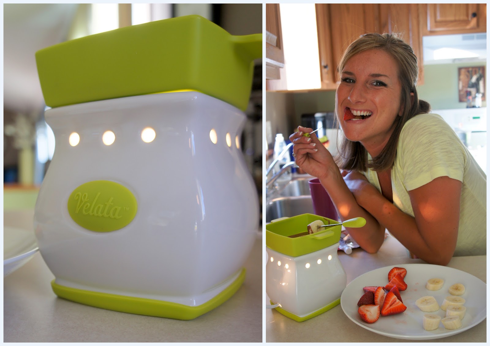I am beyond hooked on this stuff. So you all know Scentsy right? Well, they just came out with a new line, Velata. And just like Scentsy, these fondue warmers are flameless. Meaning they are easy to use, delicious, and the best invention ever for children. Not that I have children, but I am assuming they are great for children? My husband and I helped ourselves to {way too much} fruit and chocolate last night. Oh my die. So good.