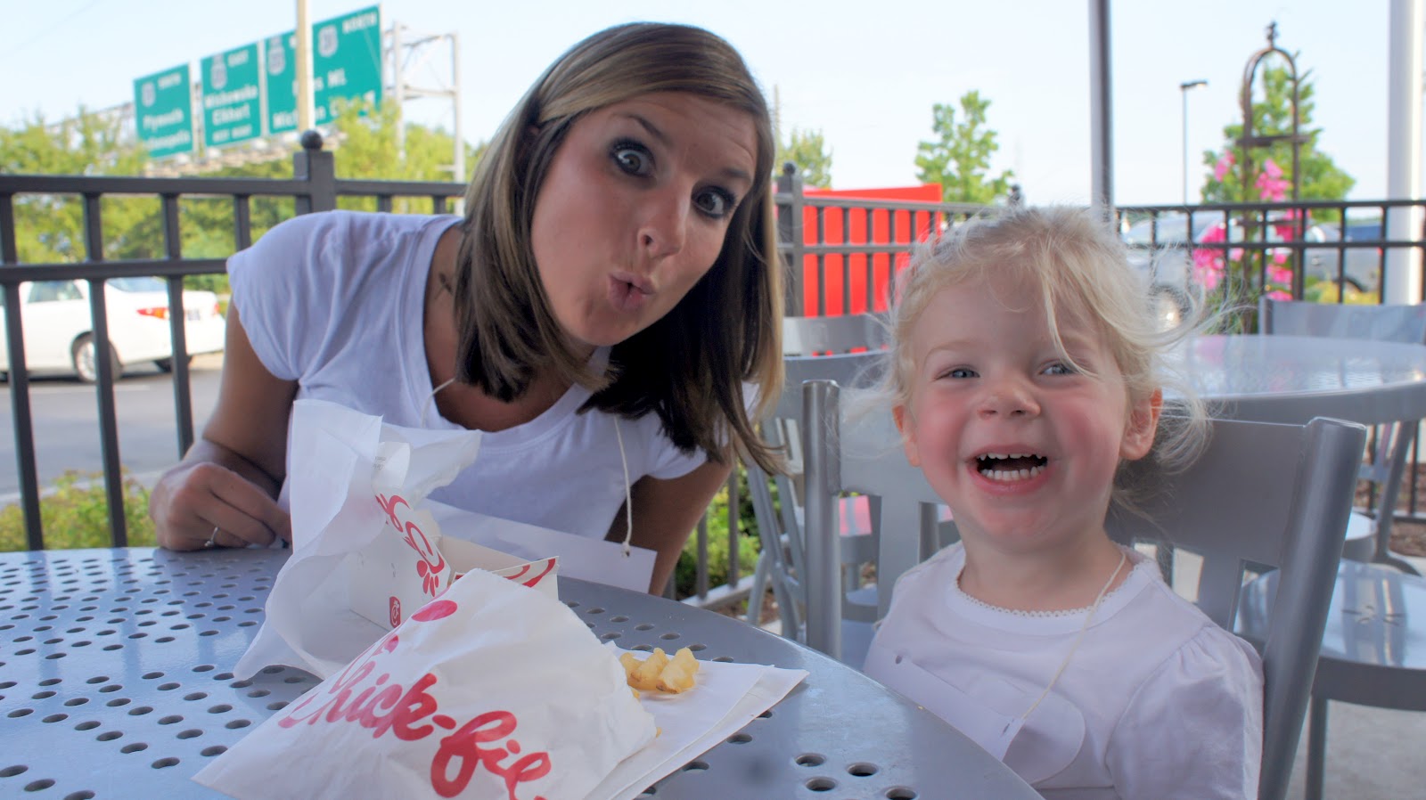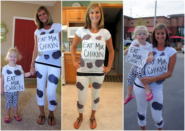 Because I thought I might look strange adorning myself in black spots alone, I drug my niece along. Just to make it look like it was her idea or something. Regardless, I have decided that I would dress up as a cow everyday if it meant a free 12 count of chicken nuggets and waffle fries.