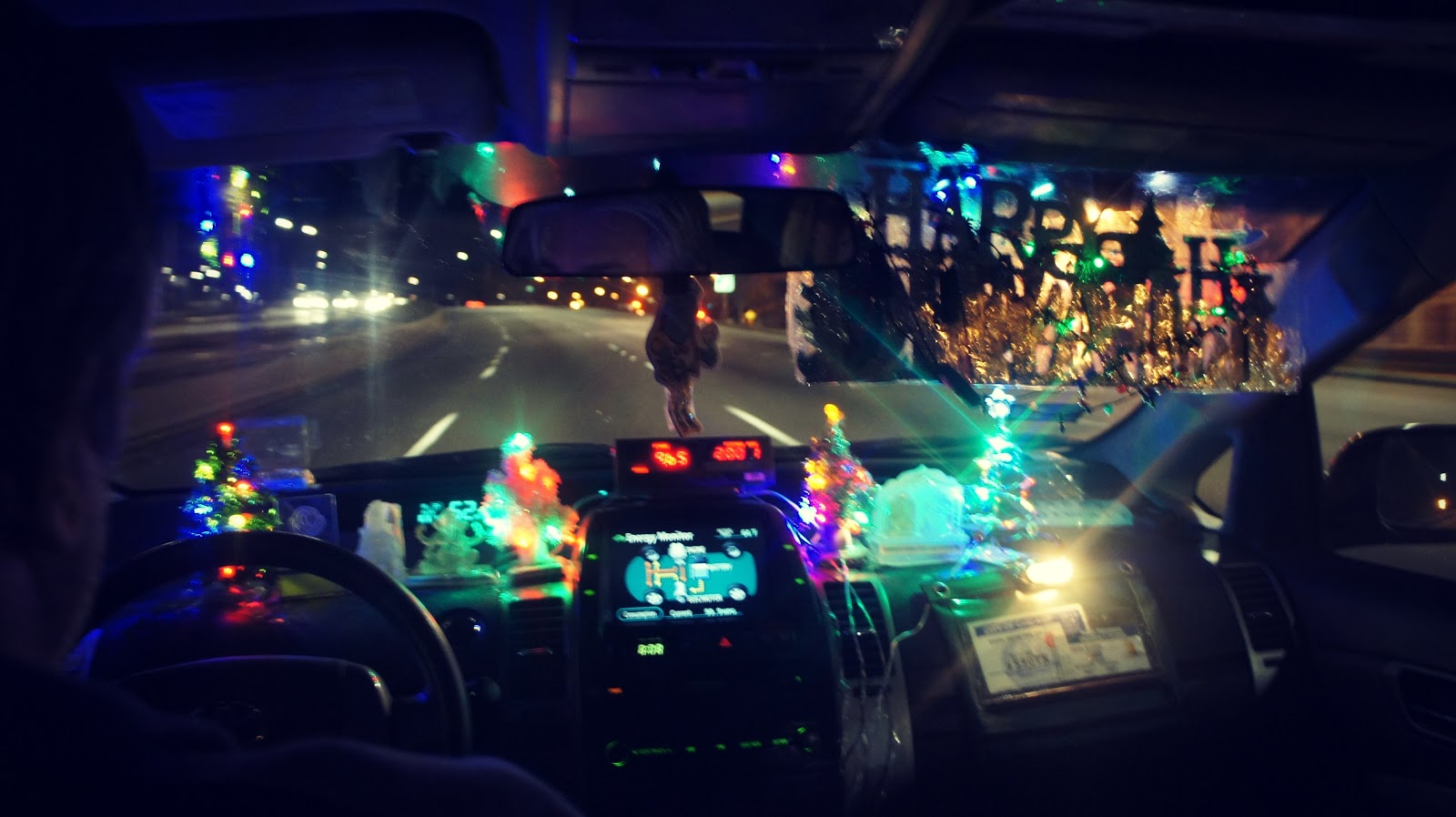 However, I am not a cab virgin. What I hadn’t ever experienced was a cab that was decorated to the nines with Christmas and Hannakuh swag.
