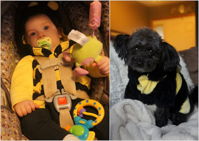 Dressed my dog up as a bumblebee. My niece decided she had to copy. Pssssh. So much for originality.