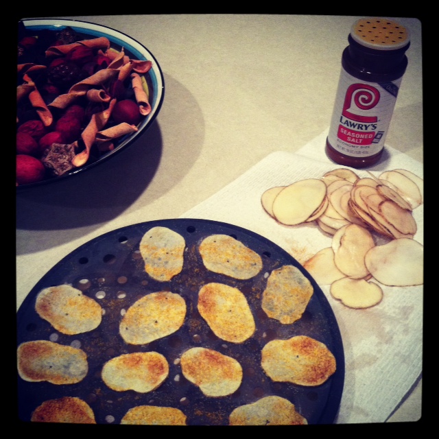 The best part of it all is that it makes legit potato chips. In a microwave. This whole thing has been rather fascinating to me. Fascinating not necessarily as to how good they are, but the fact that I am 100% okay with getting all of my daily nutrition from a microwave.