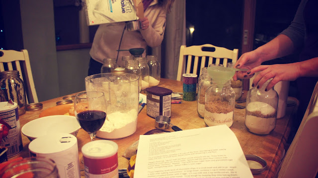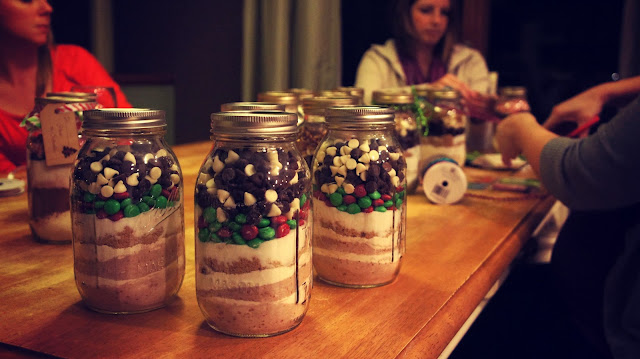 Per some of your requests, I have decided to share with you the recipes that us ladies used the other night in creating our gifts in a jar. Looking at the picture above, I think it is pretty evident that we are a qualified group of girls to share this information.