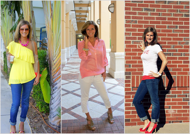 Fun top + Boyfriend Jeans + Heels = My outfit happy place.