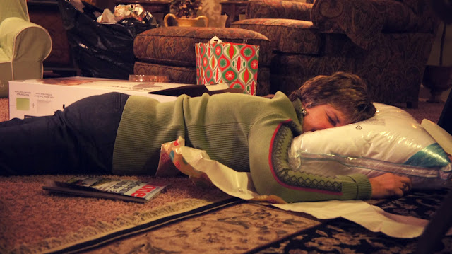 my mom passin out..she had a few two many reinbeers. (or trying out her new pillow…borrrring)