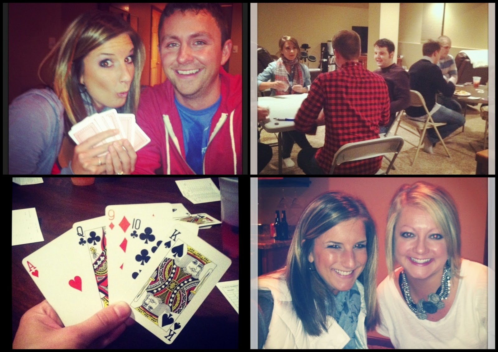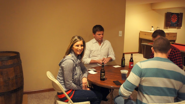 Friday night I got all gussied up my best paint infested sweatshirt and sweatpants and had friends over.I like to impress. We celebrated life with champagne..which reminds me I should probably go pick up the cork that is laying in the middle of the yard still. It was a good pop as you can tell. Saturday we attended our first ever euchre tournament.