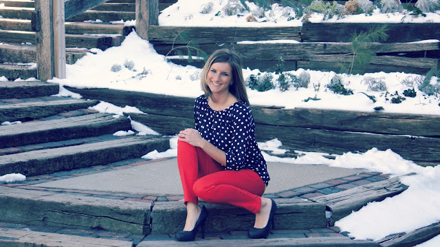 The second item up is this Everly polka dot top. Apparently my stylist caught wind that I also have this thing for polka dots. I can’t help it they are cute, they just are. You know what’s even cuter than polka dots though? Red pants WITH polka dots.