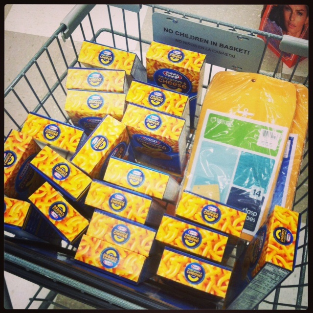 Danielle wanted me to write about what the cashier thought about me when I brought 20 boxes of macaroni and cheese to the register on Tuesday.