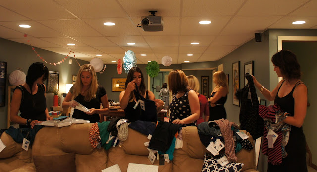 You know what it feels like on Christmas Day when you get to distribute everybody’s presents and you all eagerly wait in anticipation to find out what’s inside? Take that feeling and times it by about infinity. That’s how it felt minus the awkward “oh my gosh I love this…..not” type of fake outs that occur at most gift opening events. Not only did we all get to open our boxes and decide what we wanted to keep or send back—we got to go through each other’s boxes and “shop” their items. If you do the math we had approximately (okay exactly) 80 pieces of clothing/jewelry to rummage through. Throw in a few glasses of wine and you can imagine the amount of “Oh my gossssssssssh that is SO cute on you”s that were said. I think I held the record with saying it about 218 times. I can’t help it, cute things excite me.