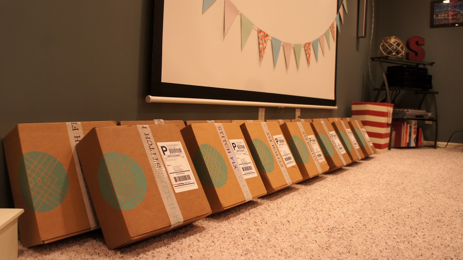 It’s no secret around here that I am an avid user of Stitch Fix considering I’m on fix number ten thousand, I mean 14, or something like that. When the fine ladies over at Stitch Fix asked if I would be up for “experimenting” a new concept that they are trying out I knew I had to say yes. Experiments and I typically don’t get along all that well (ie: in the kitchen) but this one I figured I could handle. Some of you may be aware of how the typical process works with Stitch Fix—you fill out your style profile, a stylist will work their tail off to find items suitable to your tastes/sizes/etc, and then you receive your own personal “fix” with 5 items in which you choose what you want to keep or send back. This is all great and fun but when Stitch Fix came up with the idea to take this same concept but add in a few bottles of wine, food, decoration, gift bags, and about 15 girlfriends..well it gets a lot more great and fun. So that’s what I did. I invited some of my lady friends over for an evening full of fashion. Each one of the girls who came filled out their style profiles in advance and a day prior to the party I received all (16) fixes. Imagine the joy that ran through my body when my eyes were introduced to this sight.