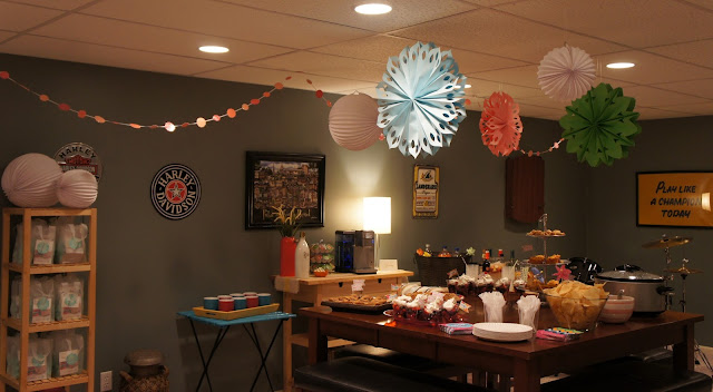 PPPS. The party was held in our basement because well yeah—our main level. Still not finished. Hence the vast array of sports // motorcycle // drum set paraphernalia that my husband has so graciously adorned the walls with down there. Nothing screams feminine like a few “PLAY LIKE A CHAMPION TODAY” posters screaming at your face.