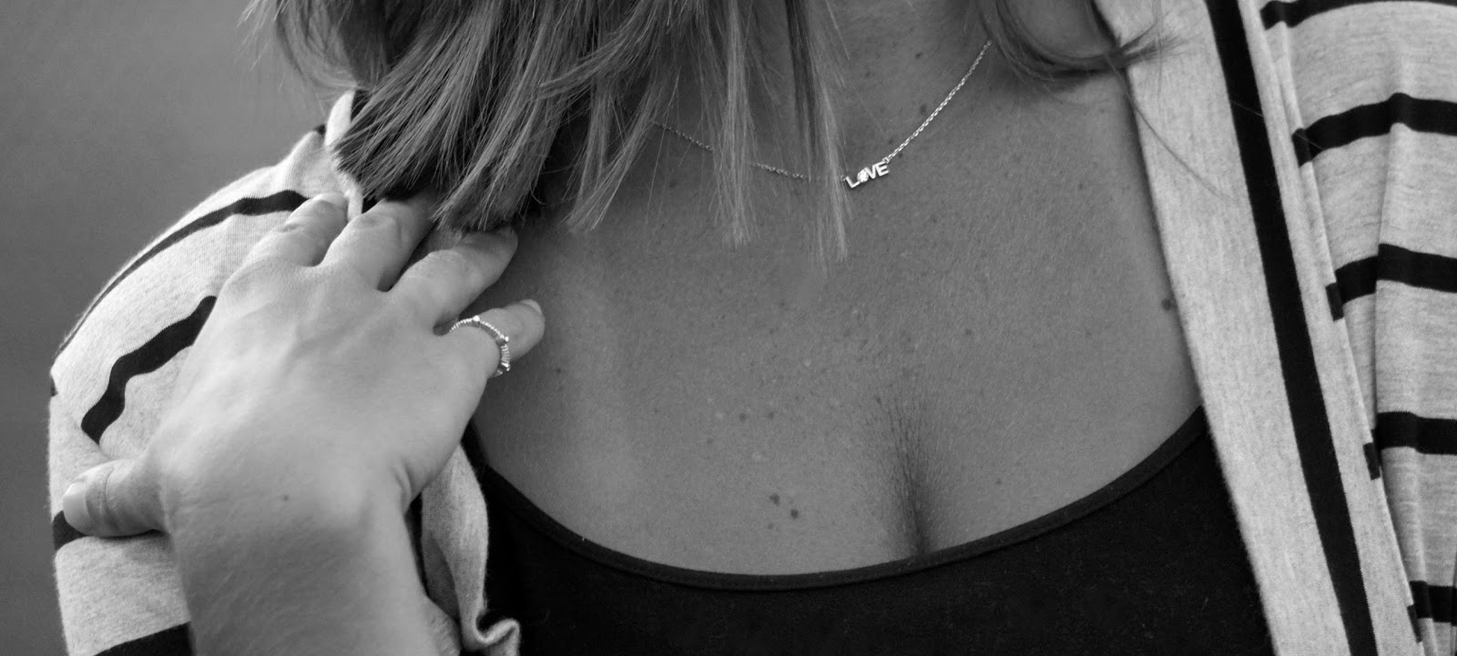 We then paired the cardigan with the cutest little jewels I ever did see. This “love” necklace below is a new personal favorite as you can wear it with everything. Layered, alone, it’s just so cute. We also decided to add in a “midi” ring which I turned into a pinky ring because well, pinkies are cute so why not show them off? But then again so are middles of fingers apparently hence this new midi trend..