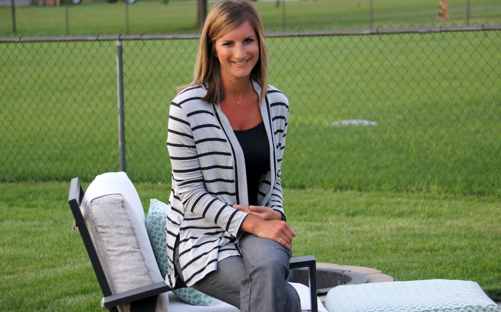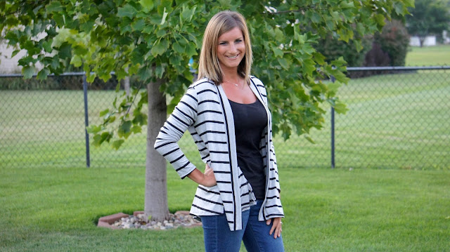 Love, Yellow is complete. As you may or may not recall the theme for September was stripes. Not to be confused with strippers because well, I know how that goes. Knowing that cooler temps were upon us (good joke–it’s supposed to be nearly 100 degrees here Tuesday) I figured finding something that was suitable for those cooler evenings and was just the ticket. Enter this little diddy.