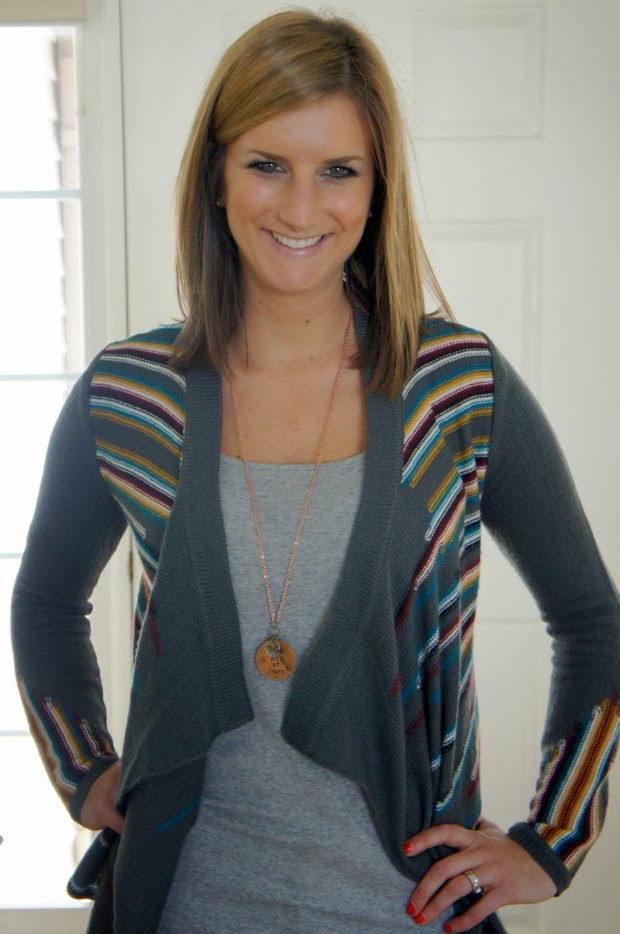Once home, I kindly yell at my husband to take a picture of me for blogging purposes while he is in mid-bite of his sandwich. He kindly obliges after I remind him that no pictures equal no money.