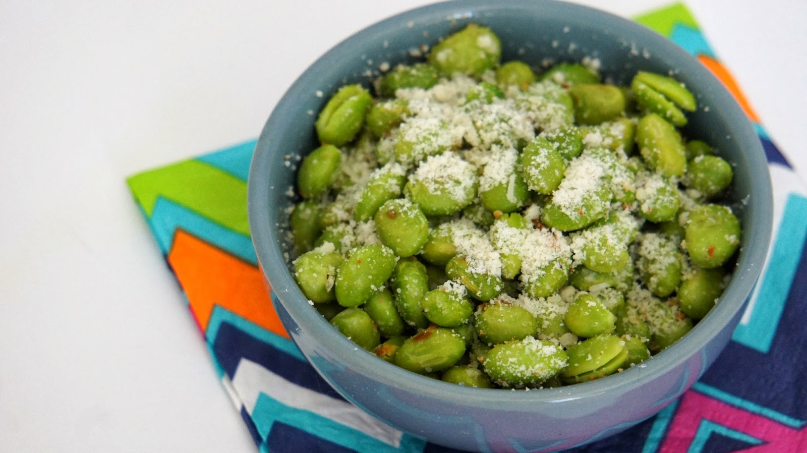 For the edamame, purchase it outside of the shell, lay it all on a baking sheet, drizzle some olive oil over the top, add salt, pepper, and Parmesan cheese and bake for 10 minutes or so at 350. Obsessed.