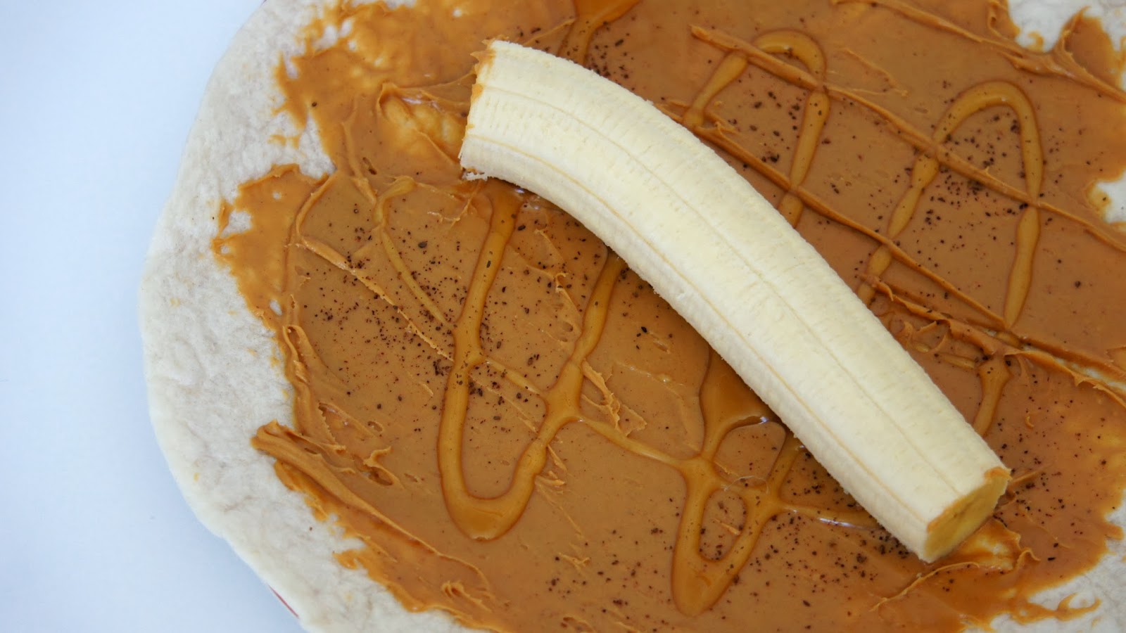 That would be a tortilla, peanut butter, honey, cinnamon, and a banana. Amazing. Just roll it up, eat it like a taco, fill up on the protein, and go about your day.