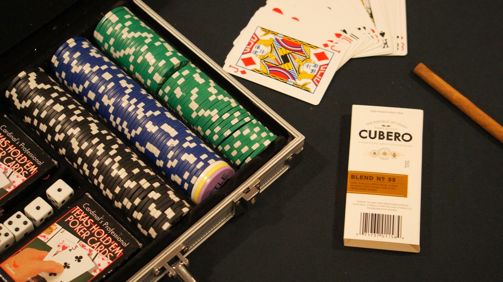 That’s right–a poker night in a box [or in a case for this matter]. Obviously Cheez-Its and popcorn made the cut, along with the cutest (am I allowed to call cigars cute?) cigars I’ve ever seen.I found those little Cubero cigars at Walmart for a few bucks a pack and knew they would fit perfectly into my professionally made case of beer.