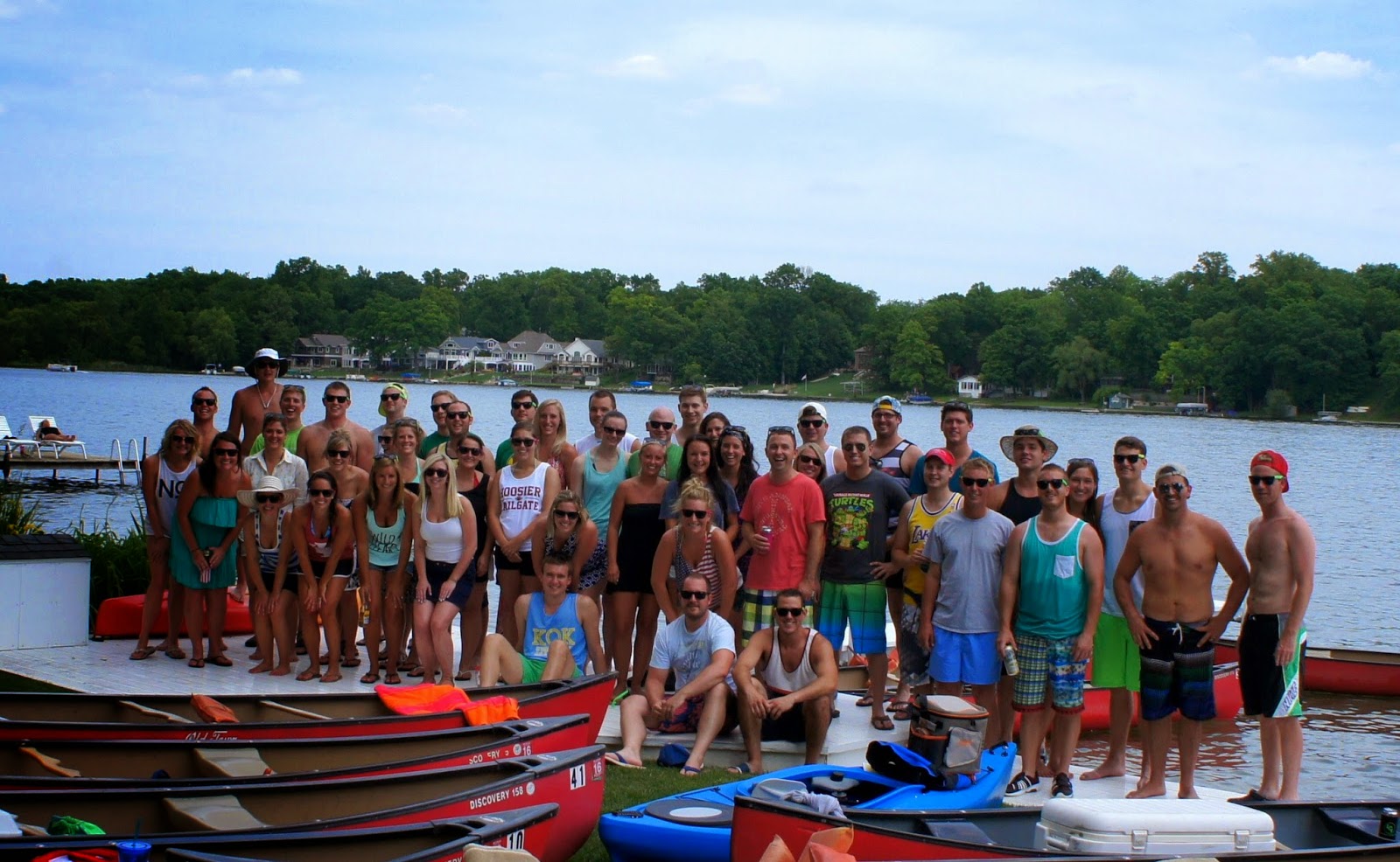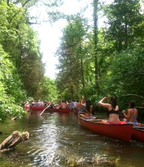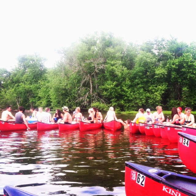 This weekend was our 5th annual canoe trip with 50 of our closest friends. We like to keep things small and quaint around here. I was a tiny bit nervous that having 50 of us paddle down the river together was going to get what you may call, “a little out of control” however with the exception of a few of us, we pulled through and came out both strong and walking. Something that none of us did last year. We departed around 2 pm and made it off the water close to 6. The best part about canoeing alongside 20 some other canoes is that: