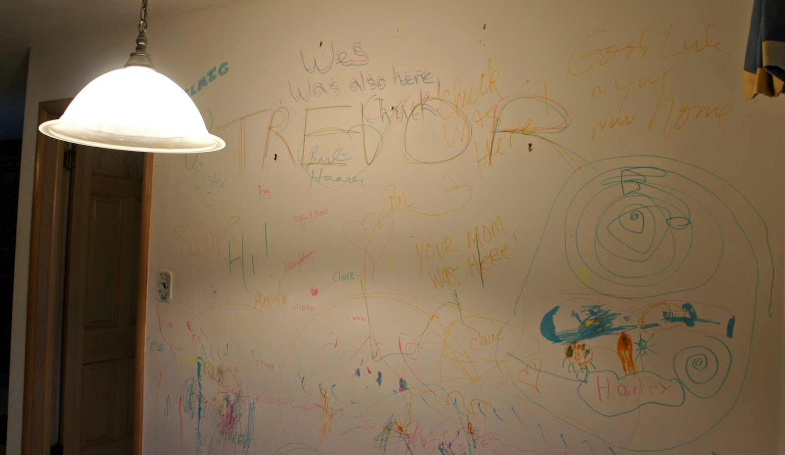 So what do you do with a house that you are about to change everything to? Well, you invite all of your friends and family over for a party. You bust out the markers for the kids to draw all over the walls that are being knocked down [or for the adults who like to draw human private parts…], you consume copious amounts of wine and/or captain, you eat cheese upon cheese [because duh], and you enjoy your first and last day in your new “as-is” house.