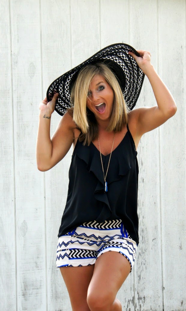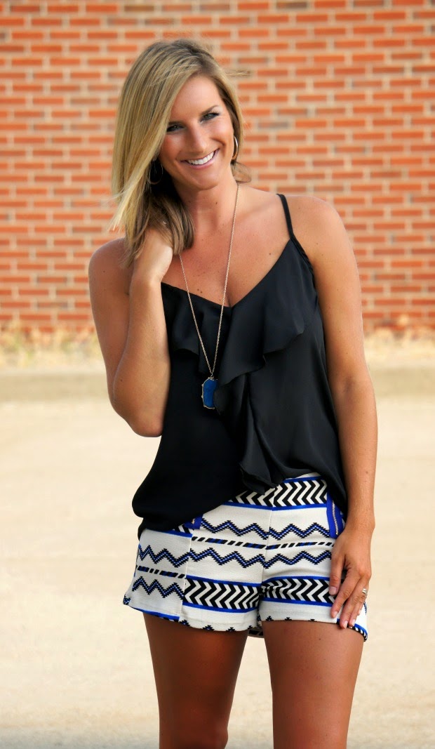 ruffle tank. For one, we have never done shorts and before and two, we have never done