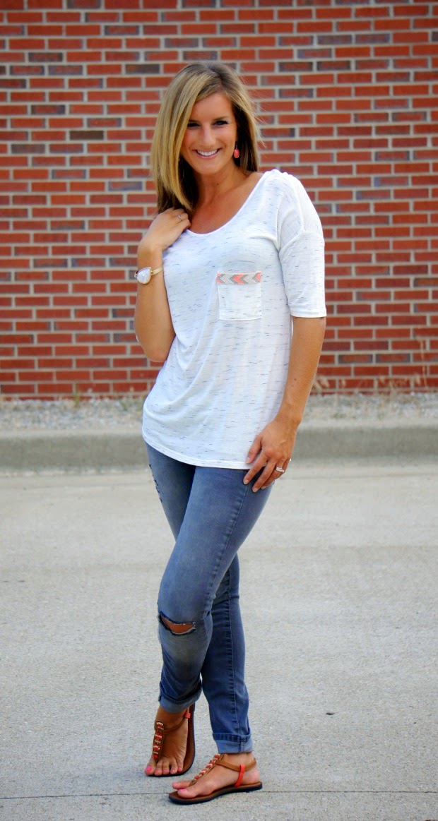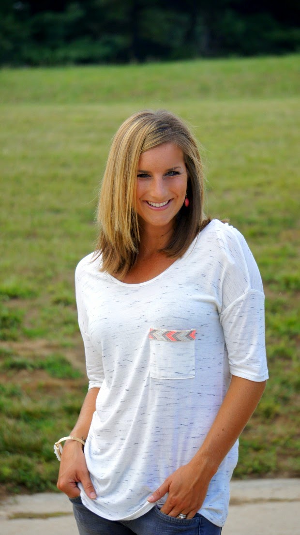 I know what you are thinking–already? I know only because I am thinking the same thing. But it’s true, another month of Love, Yellow is upon us and just like always–I am stoked. Because it’s August [whaaat] I wanted a piece that would be a good transitional piece to Fall which is right around the corner. Something that could still be worn for the remainder of the Summer, but could also be worn in two months from now. When I saw this kinda tee, kinda three quarter sleeves, kinda awesome top I knew it was perfect. Add in the colorful detail on the pocket and the criss cross action in the back and I was sold, hook line and sinker. Not to mention it happens to be one the softest of tops I have ever worn so bonus points there.
