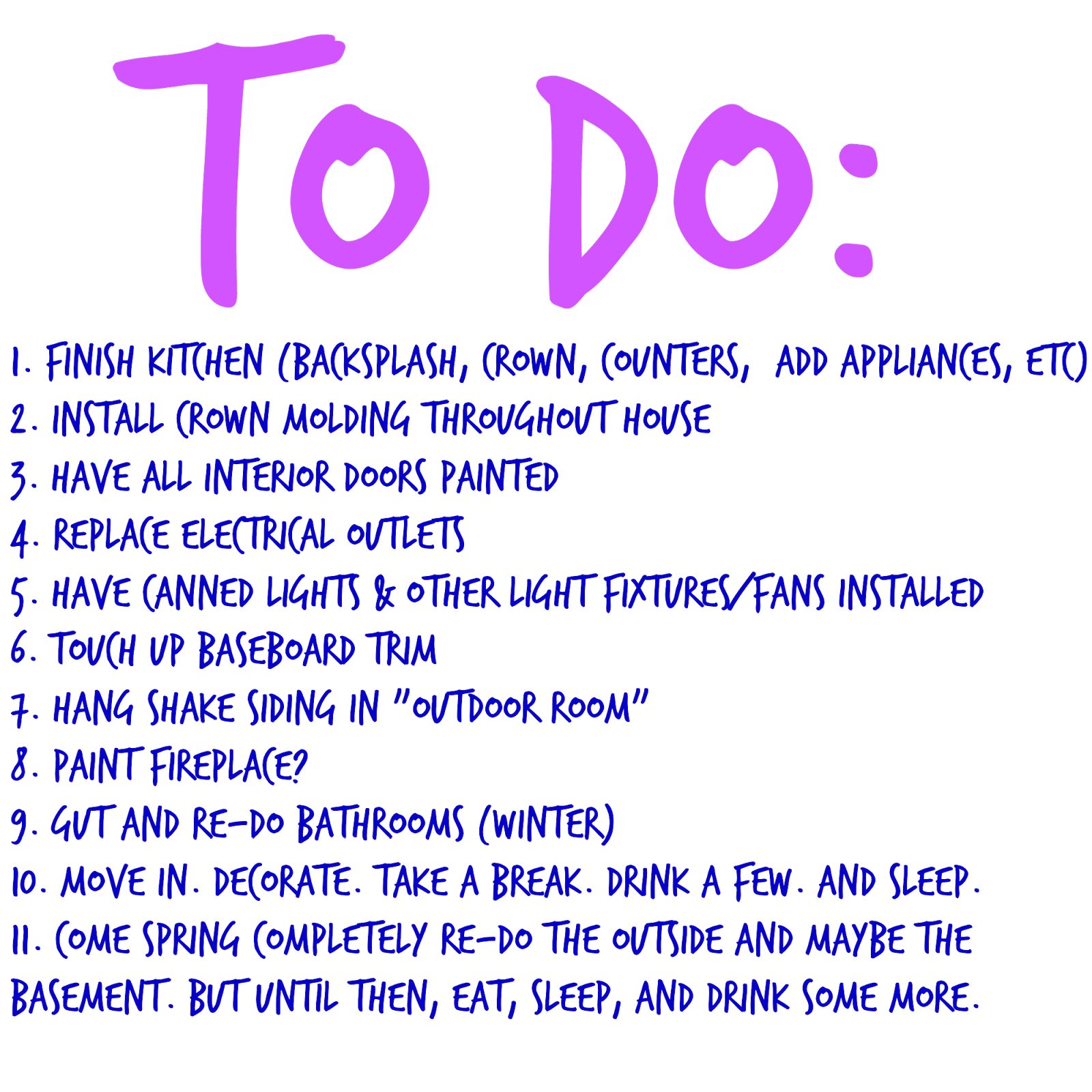 So there you have it, this week’s update. We are down to 10 days before move in [#cray] and here is what is left. Mostly.