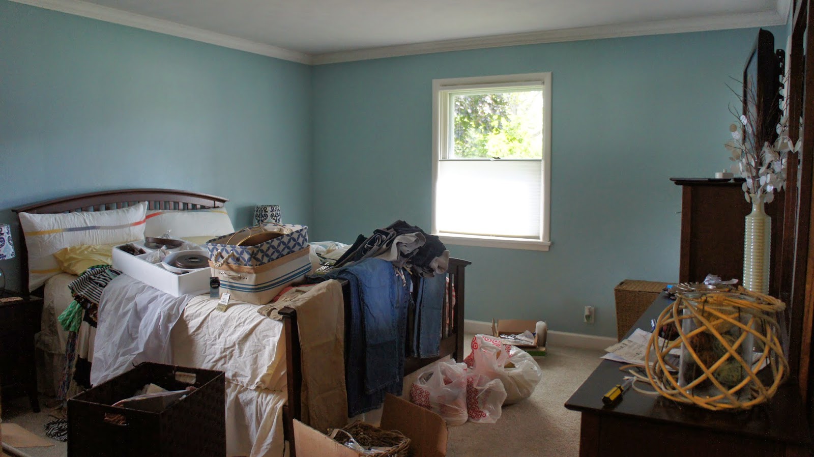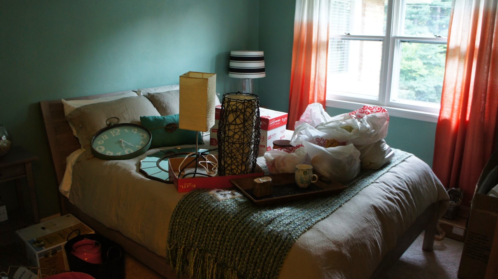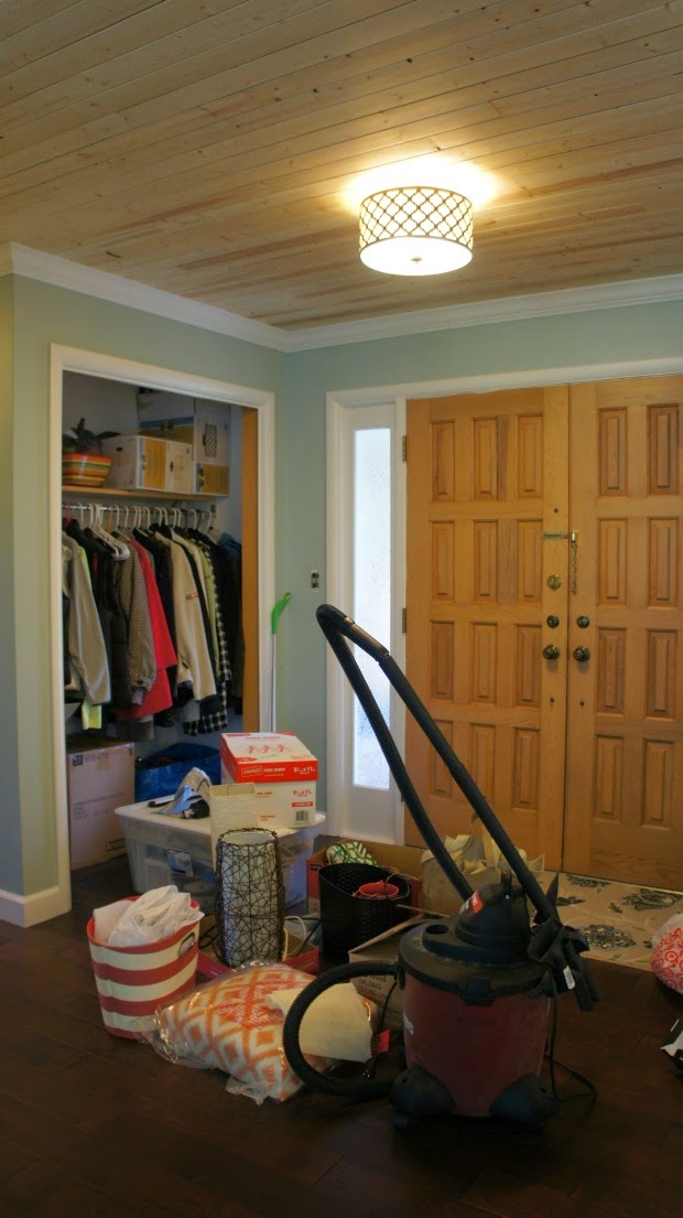 It’s safe to say I have stepped on nearly every item we own, I have cut my fingers on countless who knows what, and I have sworn in my head 232 times when trying to find something I need. For example, making coffee currently looks like this — I head to the living room where the Keurig is plugged in and sitting unevenly on top of a wicker chest. I then grab the water filter, head to the bathroom sink to fill it on up [because that’s appetizing], then I make my way to my office where I have to crawl over what seems to be three thousand boxes before I find the one with the K Cups. Head back to the living room and then remember I need a coffee mug still. Two hours later I locate the coffee mug that is laying in a Target plastic bag at the bottom of a box in the entryway closet. My morning coffee is now drank at around 7 pm because yes, it takes that long to make it. The only good news in all of this is that I am skippin’ out of town tomorrow so I don’t have to deal with this madness. Ignorance is bliss my friends. Here are some updated pictures of what it looks like around this joint. A little room by room tour if you will…