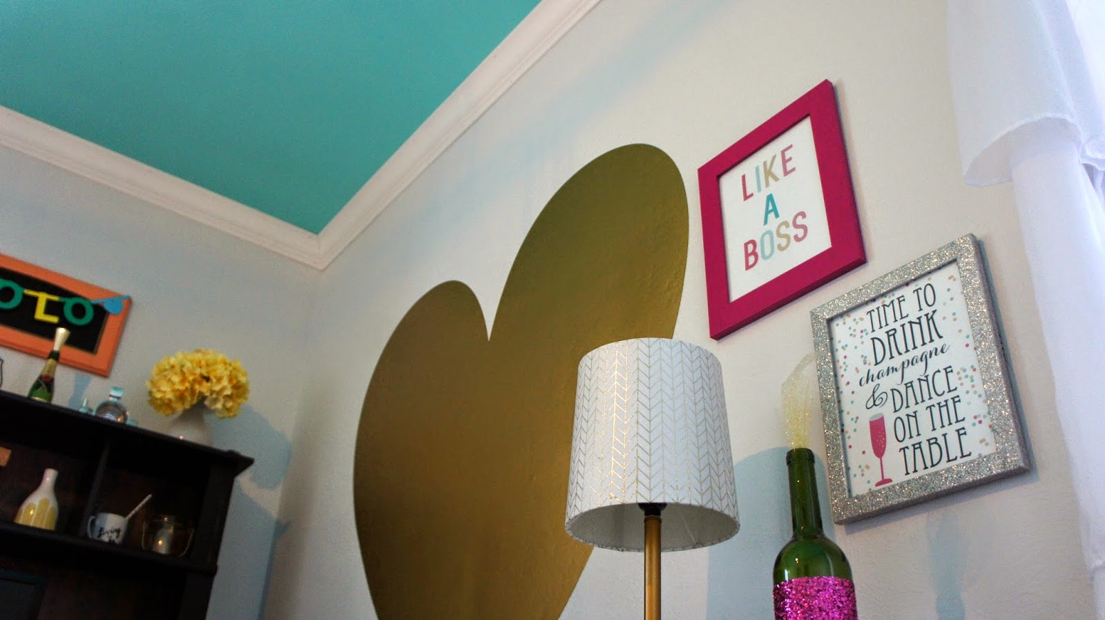 I am loving this space of mine with pops of color spread randomly throughout. I have always been a fan of fun pieces and I love that I have this space to house all of them [something about my husband not wanting a giant gold heart in our living room, I don’t know].