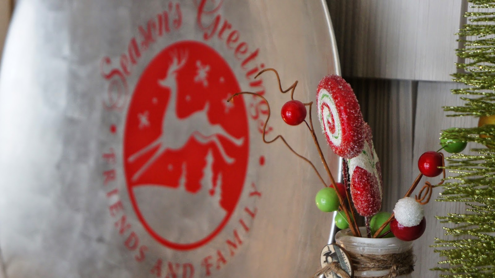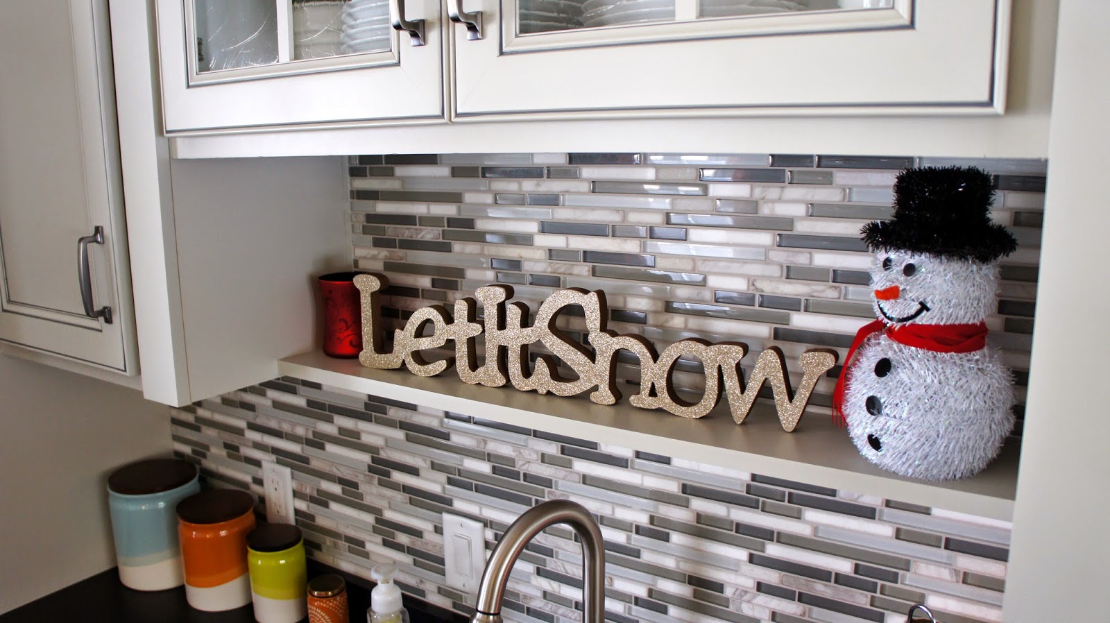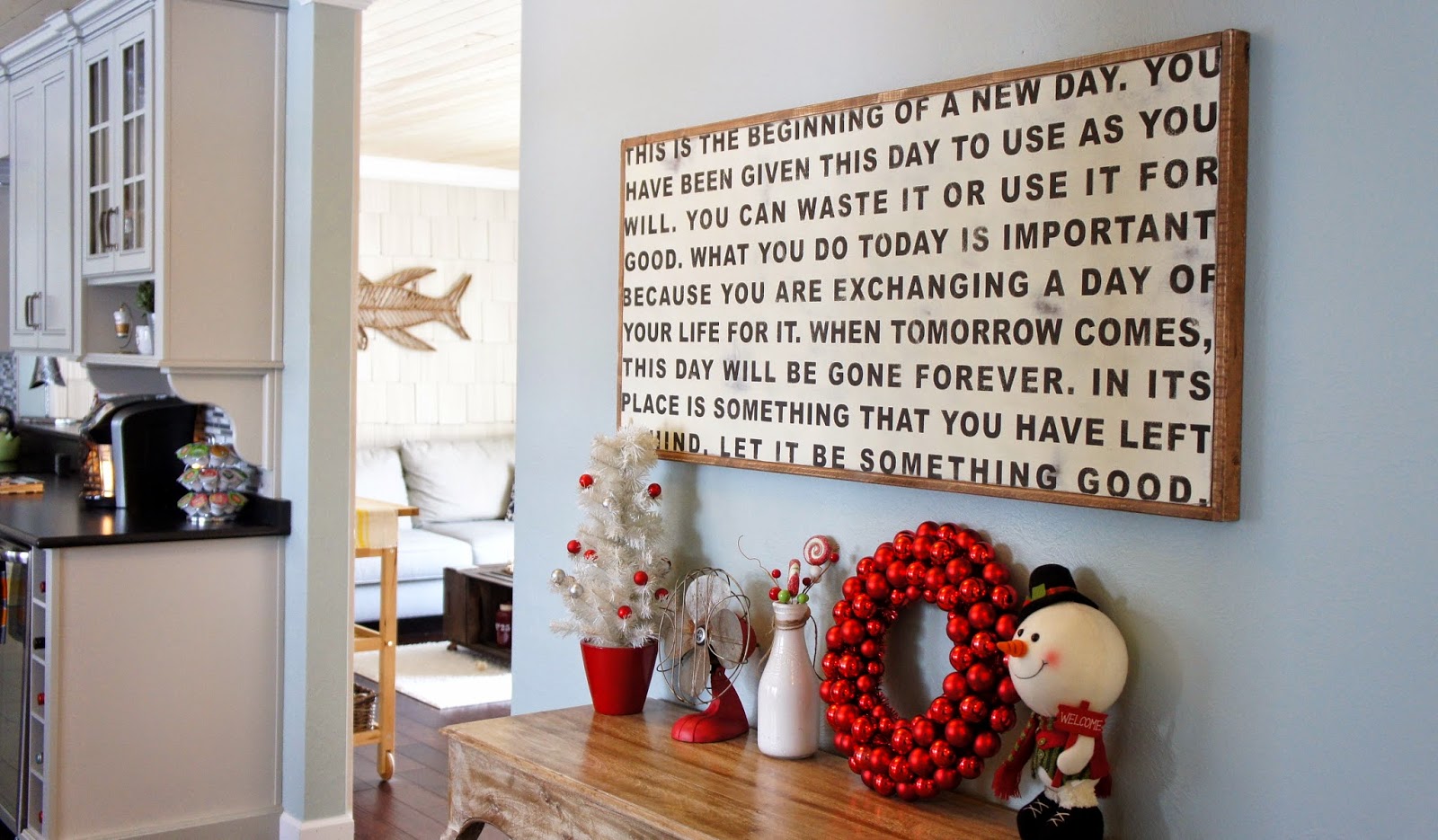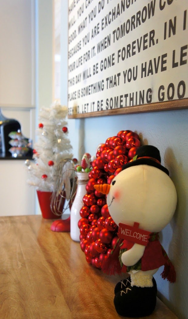 In the kitchen we don’t have a lot of decor, however I managed to fill up every possible area with signs of red, white, and silver.