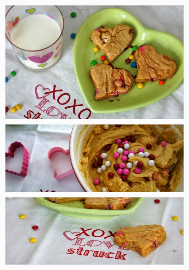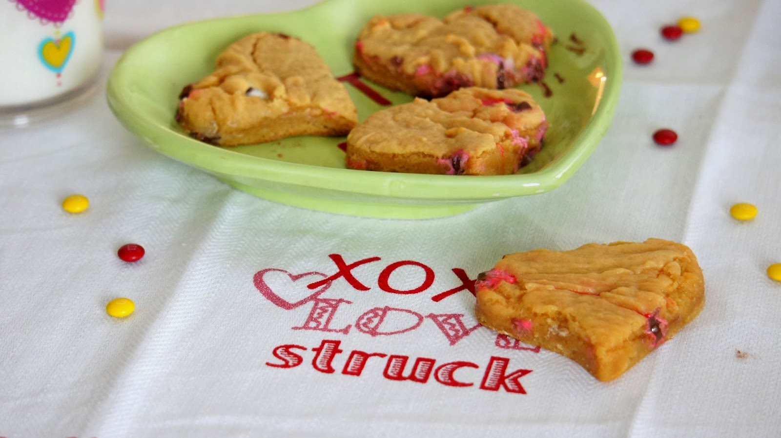 What we have here is my traditional chocolate chip cookie but remixed with valentines colored candy and shaped into cute little hearts making it the perfect treat to make for your man, kids, friends, neighbors, anybody and everybody.