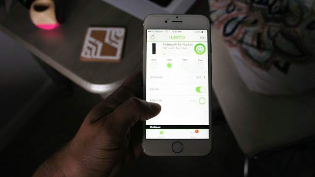 As I also mentioned, not only is the purifier awesome for those of you who suffer from allergies, asthma, pet owners, or families with young children – it is also great for you techy people. Holmes has partnered with WeMo to allow you to have full control over the quality of your air no matter where you are. With any smart device you can connect to the free WeMo app and turn on/off your air purifier, control the settings, check your air quality and find out if you are in need of any replacement filters.