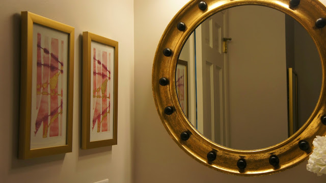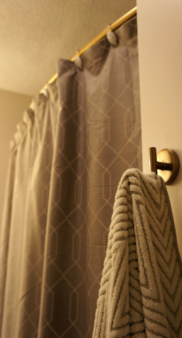 that gold shower rod you see — totally spray painted. it should last a whole two weeks.