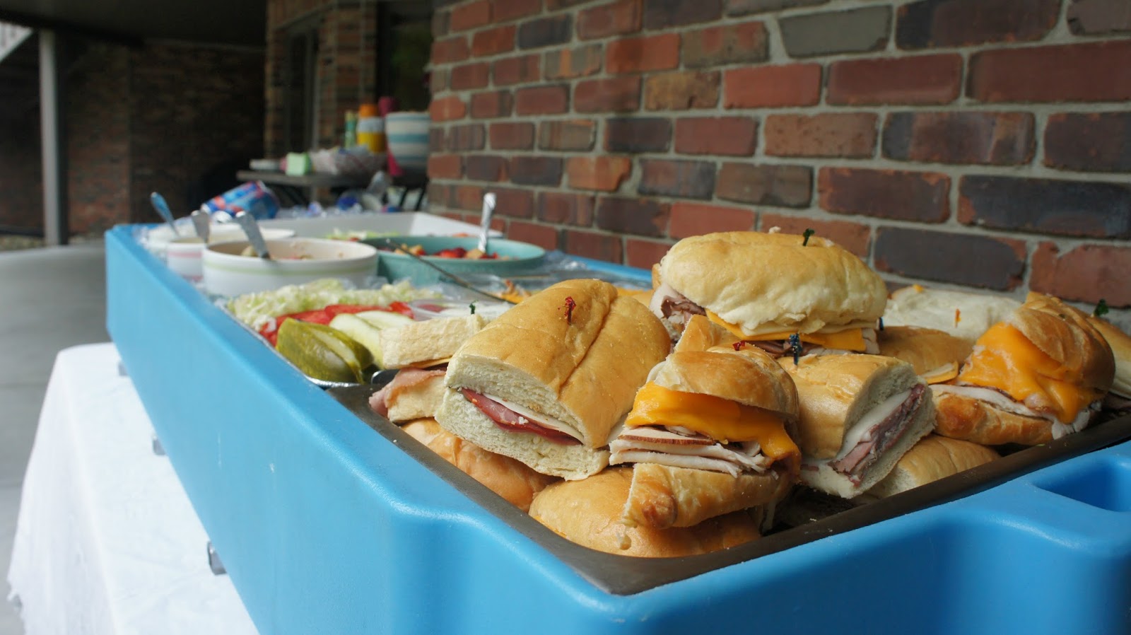 First up, baby shower. Our original plan for this shower was to be a pool party/swimsuit and cover up theme. We envisioned sipping cocktails [and mocktails for the preggo] while floating on rafts, laughing it up, all that good stuff. Well apparently the baby shower Gods were not on our side for that plan because Saturday decided to be 59 degrees and nothing but rain. While we may have not gotten into the pool we still had a great time celebrating the mama to be. As an added benefit that meant just more time to sit inside and eat potato salad. Winning.