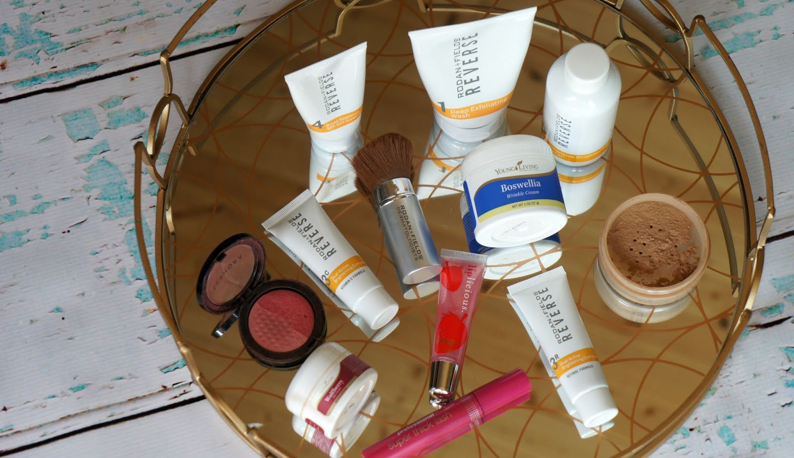 As you can see, it is mostly skin care items and hardly any make-up other than my bare minerals powder, blush, mascara, and lip gloss. Gone are the concealer and liquid foundation days [hollllllla]. For me personally the REVERSE system is where its at. I love how it brightens up my face, erases the dark sun spots, and leaves my skin feeling smoother than it ever has before. I use this both morning and night, however the system comes with a schedule for you to follow so it takes a little bit of time before you use it two times a day like I am. Also I should note that I started using this system in February and have only had to repurchase once meaning it lasts for months.
