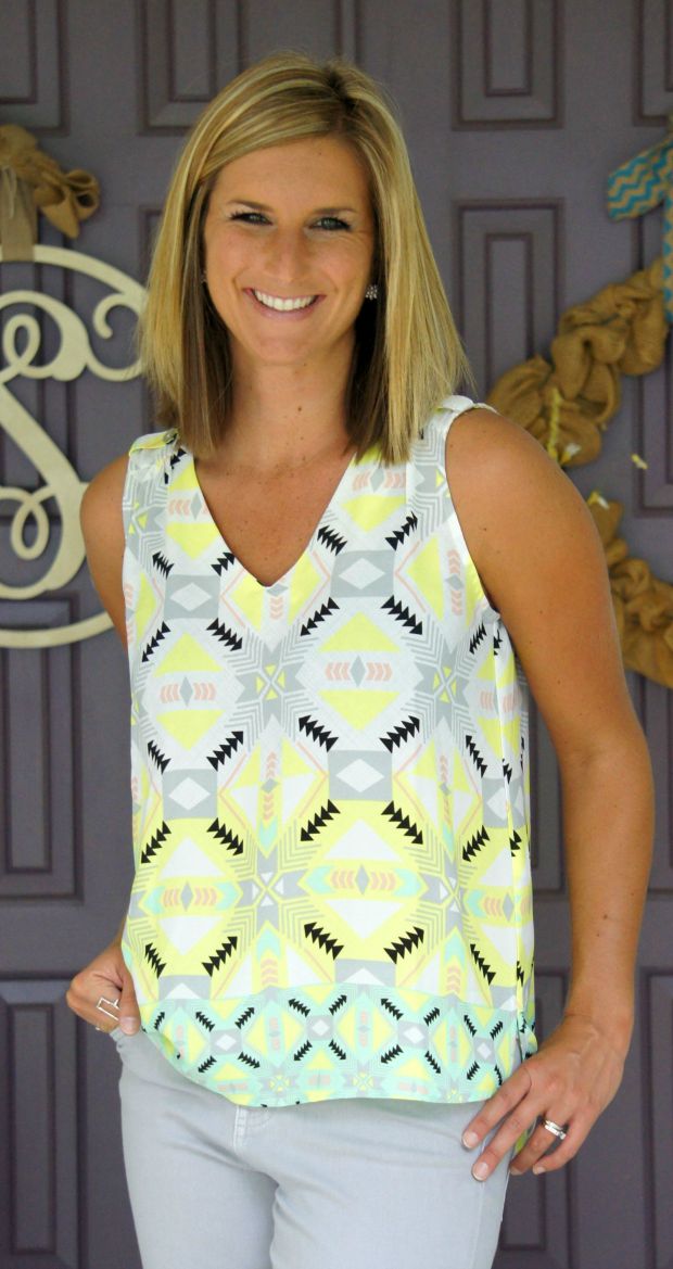 This top had me at the colors. I love how light and airy while fun this print is. Total keeper. Shocker.