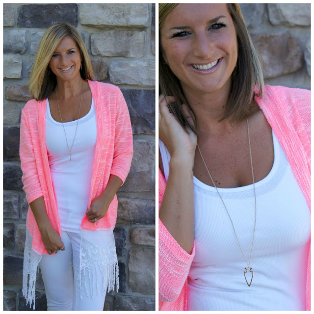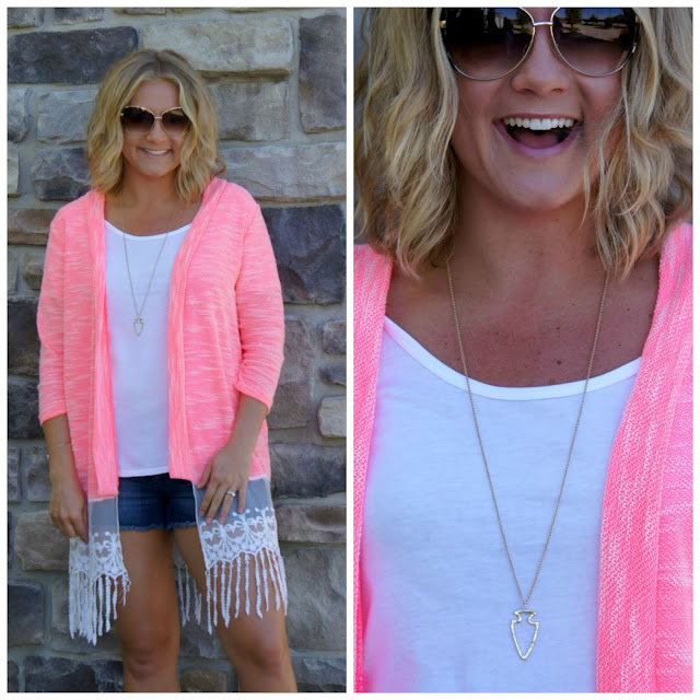 Because we are about to be in that awkward “it’s still Summer but Fall is almost here” stage we decided to find the perfect transition piece that you can wear throughout the next couple of months. This neon lace fringed kimono fits the bill perfectly. I’m not kidding when I say this might be my very favorite thing in my closet now. I love that you can wear it with shorts or with pants and look on point either way.