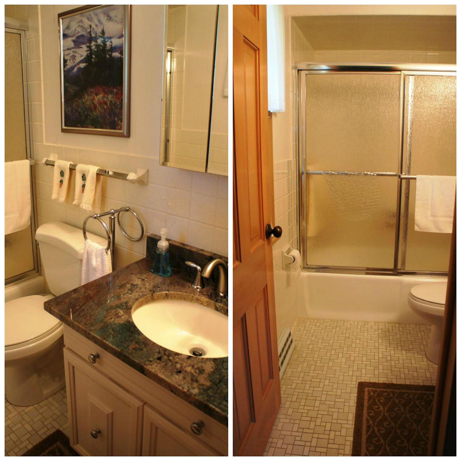 Before we dive in to the after pictures, it only seems right to share what this bathroom looked like before. It was a tiny little bathroom with a single sink, shower, and barely space to tend to your business if you know what I mean. Yes, I meant poop. Continue on.