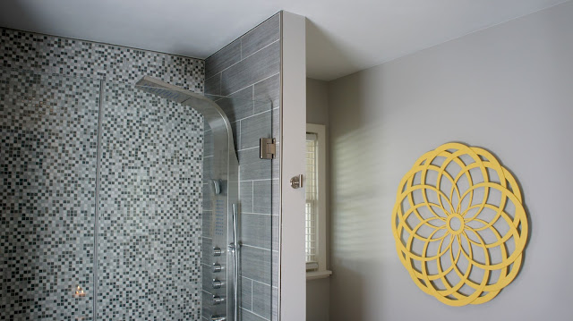 Other items to note – the paint color is Sherwin Williams “On The Rocks” and that amazefest shower panel is from