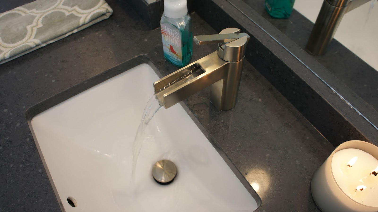 We have become huge fans of quartz stone after finishing our kitchen so we chose that for the countertops and I couldn’t love it more.