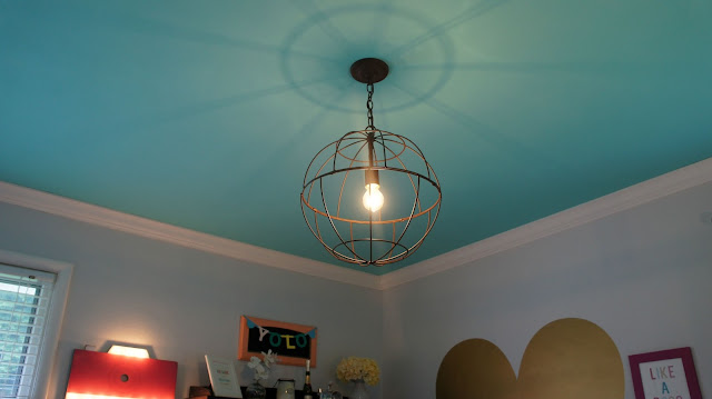 The only thing I was sure of when I started planning out what I wanted my office to look like was that I knew it had to have an aqua ceiling. I went with Sherwin Williams Tantalizing Teal and it did not disappoint. It’s always amusing to watch older people walk through our house and just stare up at the ceiling and say “wow, that’s bright.” Old people – they just don’t get it. Because the ceiling is the statement piece I wanted a neutral color for the walls – Sherwin Williams Rhinestone for the win. To really make things pop all of the trim and doors were painted white.