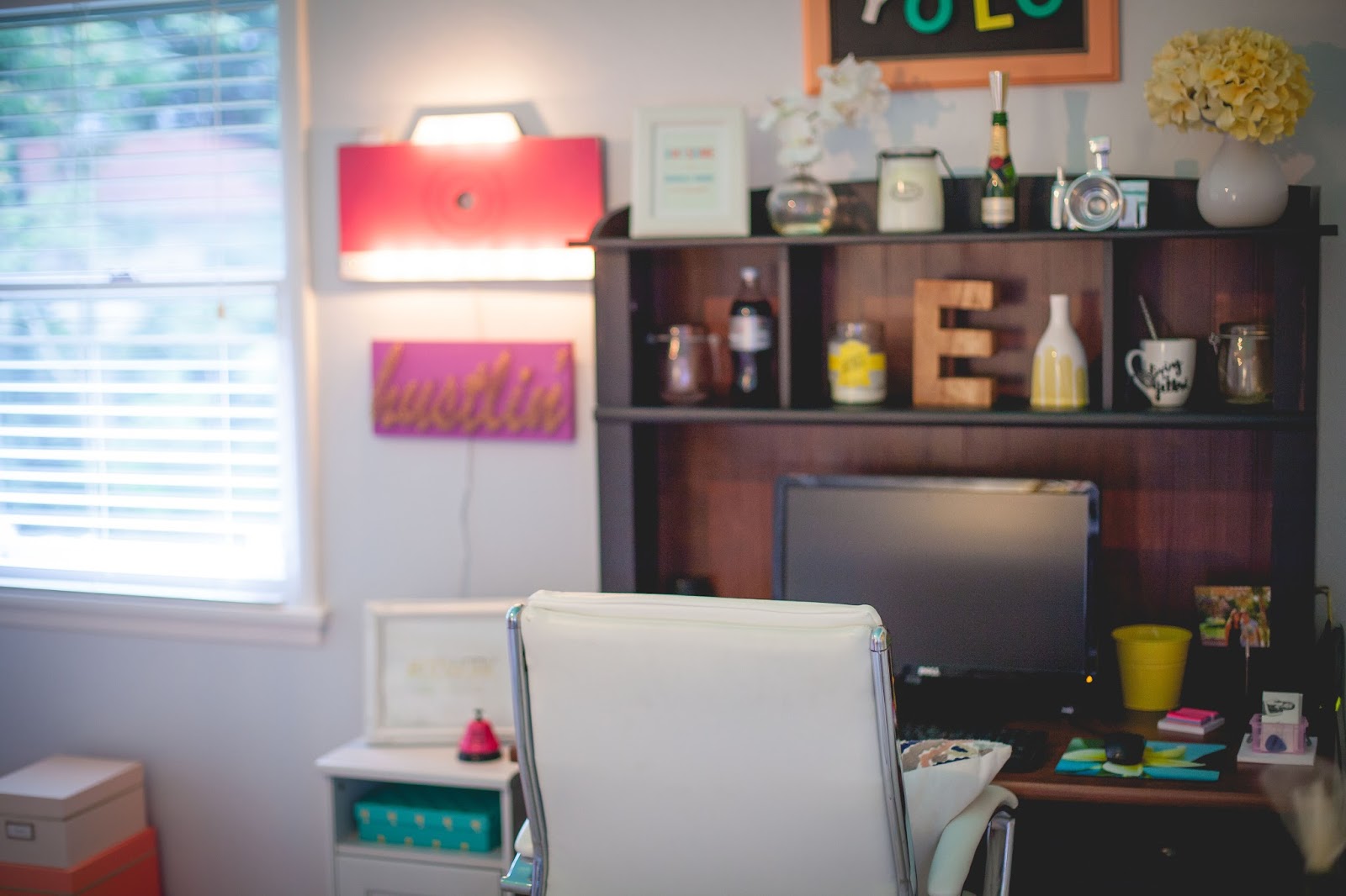 As you can also see from the photos above, I do have two different desk areas in this room. That wasn’t always the original plan but after I got my beloved HP Sprout I needed to incorporate another sitting space into the room to use that bad boy. After finding that cute little grey desk at a local vintage shop I was all set.