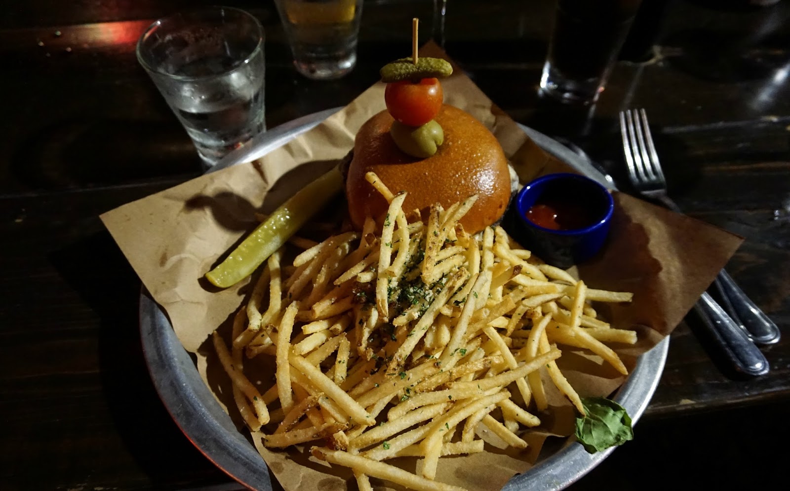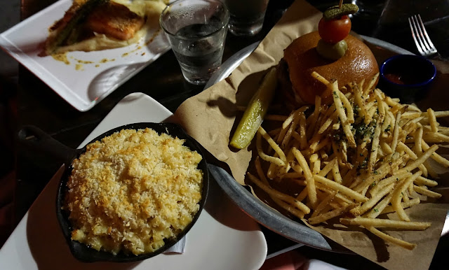 In case you are trying to figure out if I actually ordered that giant bacon cheeseburger, parmesan garlic fries, white truffle macaroni and cheese, and [a couple] cucumber infused martinis all for me the answer is obviously.