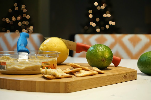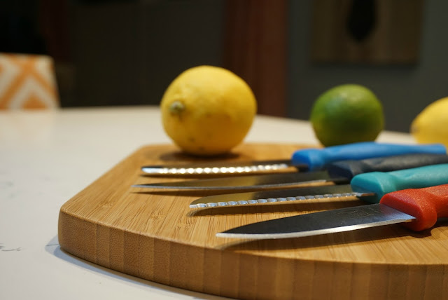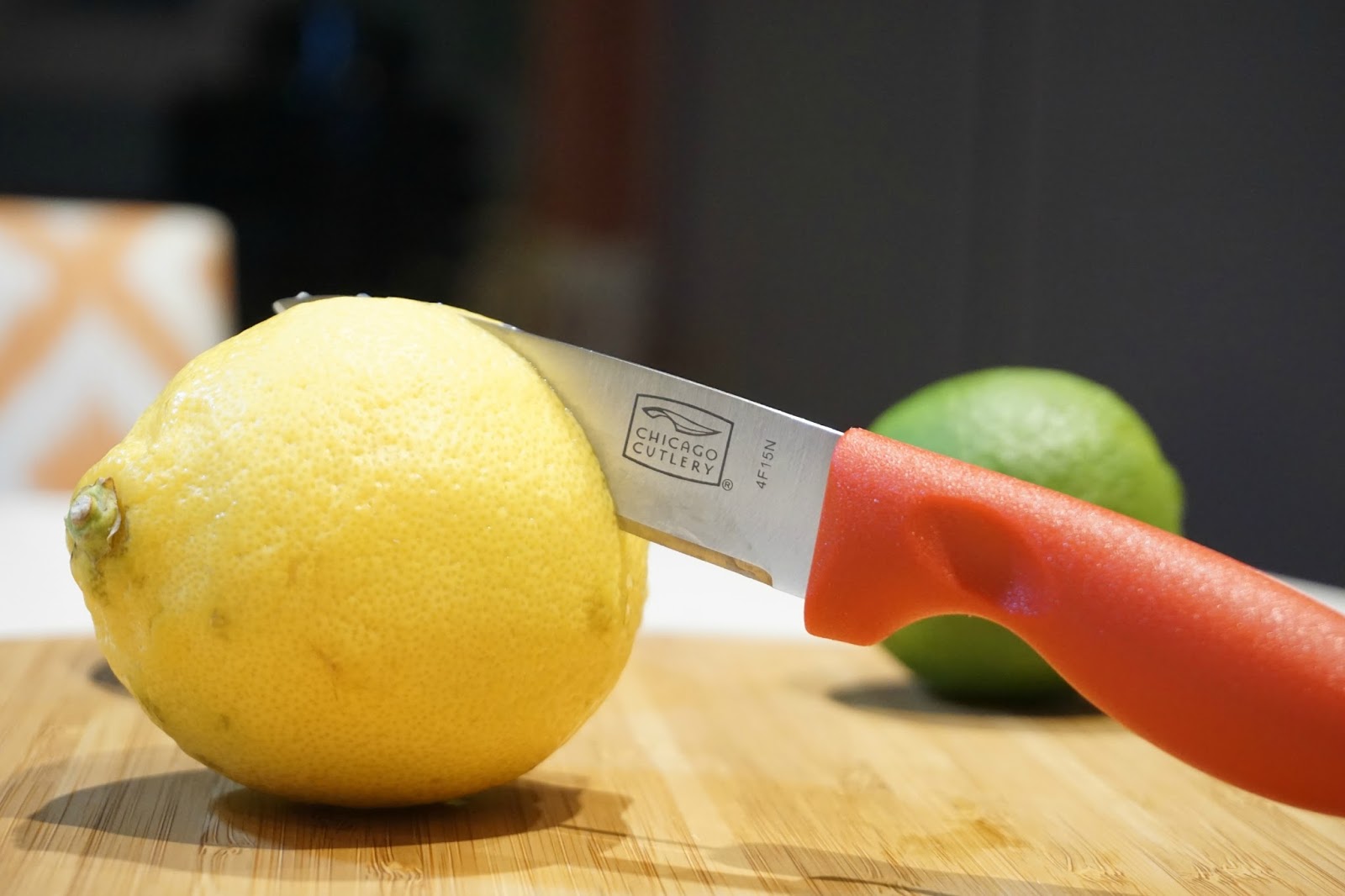 You know what comes alongside the Holidays right? Hosting. When I realized that this knife set came with a sandwich spreader, paring knife, tomato knife and utility knife I was all sorts of excited because OH MY GOSH I AM AN ADULT NOW. I didn’t know a tomato knife was a thing but it is and now I’m going cut tomatoes all day long because I can. Oh the freedom! These knives are the real deal. And by that I mean sharp. I tested the paring knife on the lemon and slice, right through the thing like butter. I felt very ninja like.